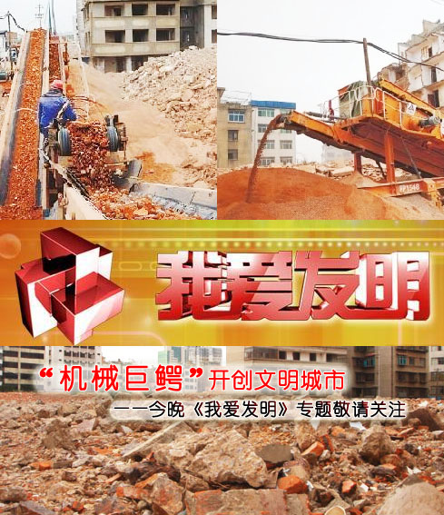 今晚18:55中央電視臺(tái)10頻道《我愛(ài)發(fā)明》欄目將為大家揭開(kāi)建筑垃圾處理設(shè)備——移動(dòng)破碎站如何將建筑垃圾領(lǐng)上資源化發(fā)展的道路,并為您一一解讀一種可以把建筑垃圾一口一口吃掉并吐出“黃金”的設(shè)備是如何幫您實(shí)現(xiàn)投資致富的,這種高效環(huán)保、節(jié)能快捷的建筑垃圾處理設(shè)備的神秘面紗在今晚即將被揭開(kāi),敬請(qǐng)各行各業(yè)關(guān)注。